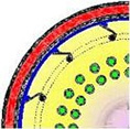 刮膜片型式為徑向滑動型,它由WFE-VA 刮膜蒸發器演變而來;刮片鑲嵌在轉子的U導槽內,當轉子旋轉是時刮片受離心力的作用從U導槽內徑向滑到加熱壁面。導槽均勻分布在轉子圓周(見圖1),轉子呈鼠籠型,在導槽之間設有動態汽液分離裝置,防止液滴的飛濺及夾帶。