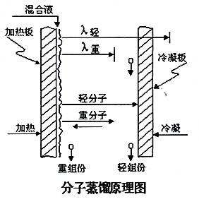 2、普通蒸餾是蒸發與冷凝的可逆過程,液相和氣相間可以形成相平衡狀態;而分子蒸餾過程中,從蒸發表面逸出的分子直接飛射到冷凝面上,中間不與其它分子發生碰撞,理論上沒有返回蒸發面的可能性,所以,分子蒸餾過程是不可逆的。